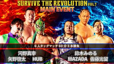 En el turno principal, Minoru Suzuki, MAZADA y Hikaru Sato se impusieron a la tercia conformada por Masayuki Kono, HUB y Keita Yano. El duelo se dirimió a ganar dos de tres caídas sin límite de tiempo. El fiero Suzuki fue el encargado de definir la contienda con su letal Gotch-Style Piledriver sobre Keita Yano.