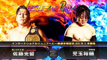 6. International Jr. Heavyweight Title: Hikaru Sato (c) derrotó a Yusuke Kodama (25:53) con un Capture-Style Cross Armbreaeker defendiendo el título