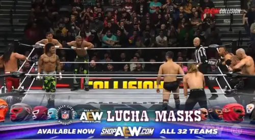 La lucha empezó con todo: The Dogs se metieron al ring y atacaron a sus rivales, y los Death Riders se unieron a ellos. Jon Moxley, en comentarios, elogió a Myron Reed y dijo que todos en The Rascalz son muy innovadores y voladores. The Young Bucks luego le cayeron encima a Death Riders, mientras The Rascalz atacaban con patadas al pecho a Claudio y un