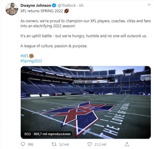 «Como propietarios, estamos orgullosos de defender a nuestros jugadores, entrenadores, ciudades y aficionados de XFL en una electrizante temporada 2022. Es una batalla cuesta arriba, pero tenemos hambre, somos humildes y nadie nos superará. Una liga de cultura, pasión y propósito».