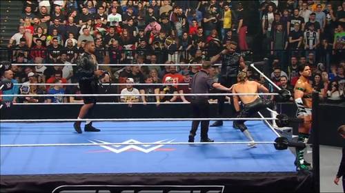 Ford intervino con un rompe espinas dorsal sobre Humberto y resistió un intento de castigo doble, cayendo de pie. Luego, Dawkins derribó a Ángel y Ford ejecutó un superplex sobre Humberto.