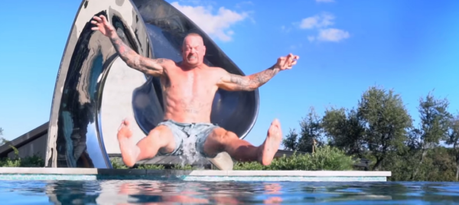 Una imagen que proviene de un video subido recientemente a YouTube en el que la leyenda viviente muestra precisamente el nuevo tobogán de su nueva casa obra de Splinterworks.