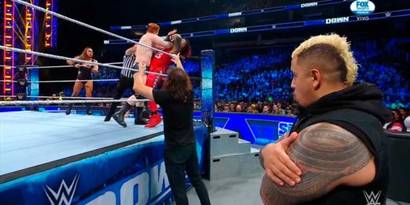 Mientras eso sucedía, Sheamus ingresó al ring y combatió unos segundos, dando el relevo a su compañero, pero fue sorprendido con un Day One, mientras Sami detuvo al celta en ringside para evitar que rompiera el conteo.