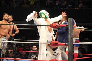 El combate fue intenso entre ambos equipos, pero cuando Aero Boy estaba por finiquitar a la leyenda japonesa, éste lo derribó de un esquinero con un poderoso castigo y después con una desnucadora finiquitó el combate.