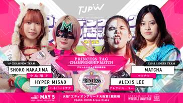 Kyoraku Kyomei (Shoko Nakajima y Hyper Misao) estaban emocionadas de tener retadores de fuera de Japón para enfrentarlas por el Campeonato de Parejas Princess. Matcha y Alexis Lee las sorprendieron ya que conocían sus trucos. En un momento determinado, las retadoras parecían estar cerca de la victoria después de que castigaron a Nakajima con un Doble Superplex, pero Misao llegó al rescate golpeando a los dos con sus movimientos característicos. Matcha luego fue eliminada por un Tope Suicida de Nakajima mientras Misao le dio a Lee el Hypermi Returns. Nakajima remató a Lee con el Diving Senton para una exitosa defensa titular.