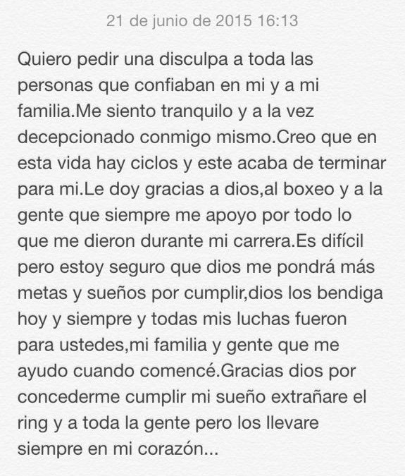 Luego de eso, en Twitter anunció su retiro profesional del encordado.