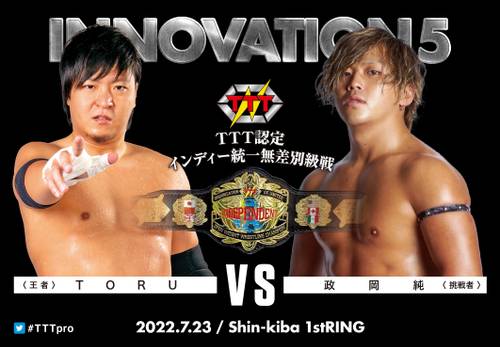 En la lucha principal, TORU logró la primera defensa del Campeonato de Peso Abierto Unificado Indie TTT doblegando a Jun Masaoka en casi 24 minutos de acciones. Ambos luchadores se conocen desde que fueron estudiantes de secundaria y mantienen una gran amistad. Eso no impidió a Masaoka a desafiar por el cinturón principal de TTT a pesar de que él es un luchador independiente. Pero TORU respondió a cada ataque con una ofensiva contudente, asegurando la permanencia con el título.