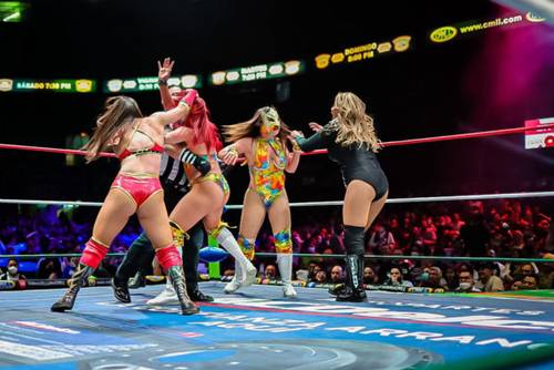 Por otro lado, las amazonas que pondrán en juego sus máscaras esa noche, Reina Isis y Jarochita, también tuvieron un gran enfrentamiento, pues durante todo el encuentro estuvieron golpeándose hasta el cansancio.