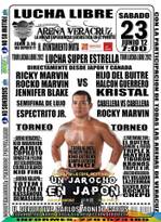 Este es el cartel del primer torneo por la copa «Ricky Marvin«, el estelar jarocho que ha logrado el éxito con NOAH en Japón. La función se llevará a cabo este sábado 23 de junio en la Arena Veracrúz, con la presencia de Marvin en persona Colaboración del compañero Mauricio Badillo
