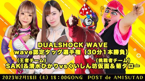 2. Dual Shock WAVE ~ WAVE Tag Team Title: SAKI y Hikari Shimizu (c) derrotaron a Kikutaro y Kuishinbo Kamen (15:13) con la Cazadora de Shimizu sobre Kikutaro defendiendo el título