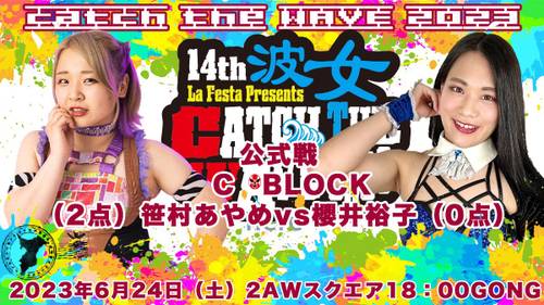 4. Catch the WAVE – Grupo C: Ayame Sasamura [3] vs. Yuko Sakurai [1] – doble conteo fuera (9:32).