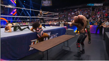 Nightingale quedó fuera de acción momentáneamente tras ser lanzada contra una mesa fuera del ring. Mientras tanto, Swerve resistió un feroz ataque doble hasta que Willow logró reincorporarse para apoyar nuevamente a su compañero. En un movimiento clave, arrojó a Marina contra Moxley, impidiendo así la rendición de Strickland.