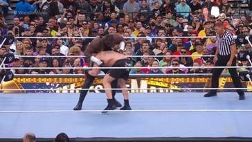 Fue así, que ambos chocaron en el escenario más importante de WWE en un choque de colosos, donde la fuerza fue el común denominador. Aunque Lesnar llegó golpeado con su cuerpo al gigante, peor éste lo repelió en cada momento que pudo, sorprendiendo a Lesnar, quien no podía derribar a su rival y fue dominado.