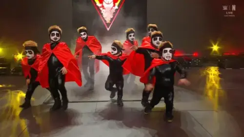 La aparición de Danhausen cambió por completo el tono del segmento. Acompañado por versiones miniatura de sí mismo y llegando en un coche con forma de ataúd, el luchador rápidamente captó la atención del público.