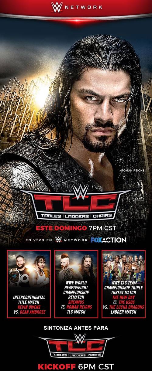 Este domingo se llevará a cabo TLC, PPV que WWE emitirá desde el TD Garden de Boston, Massachusetts y con el cual cerrará un complicado año. El platillo estelar será el encuentro en el que Roman Reigns intentará conquistar el Campeonato Mundial de Peso Completo WWE ante Sheamus en una lucha estipulada con las reglas