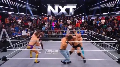 Esta noche, en el evento estelar de WWE NXT, vimos una lucha de escaleras en donde estaba en juego el Campeonato NXT, el cual quedó vacante tras el llamado al elenco estelar del anterior monarca, Oba Femi. Ricky Saints, Shiloh Hill, Sean Legacy, Dion Lennox, Keanu Carver, el Campeón EVOLVE, Jackson Drake y Joe Hendry estuvieron en el combate.