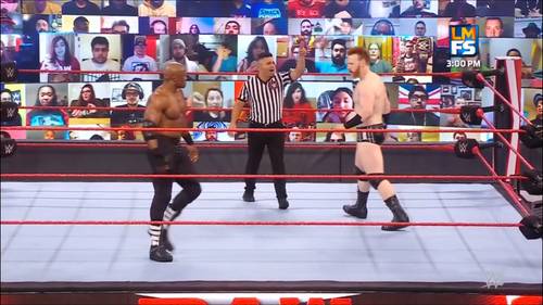 Tras un intercambio, Sheamus es sacado del ring, pero Cedric Alexander y Shelton Benjamin aparecen y distraen al irlandés, quien es sacado por Lashley. Mientras el réferi se distrae, Lashley se molesta por la presencia de sus compañeros y Benjamin aprovecha para castigar a Sheamus afuera.