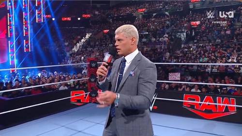 Cody resumió lo dicho por The Rock, haciendo referencia a que insultó a los fanáticos y habló de su perro, y además, evadió su desafío. Luego, le hizo saber que la gente prefiere Roman vs. Cody y no The Rock vs. Roman. El público lo apoyó.