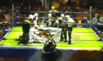 Un grupo de encapuchados irrumpió en el evento principal de la empresa Desastre Total Ultraviolento (DTU), durante la función de este miércoles 31 de mayo, en la Arena Actopan, en Hidalgo, que forma parte de la gira Supremacía Internacional.