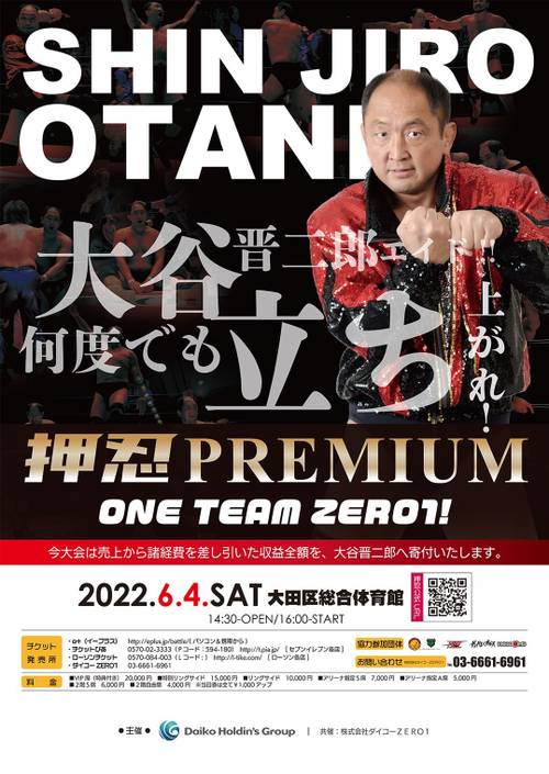 Pro Wrestling Zero1 dio a conocer el cartel completo para la función en beneficio de Shijiro Otani, quien actualmente sufre de una lesión de la médula espinal a la altura de las cervicales que lo tiene paralizado del cuello hacia abajo.
