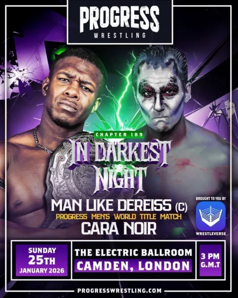 Man Like DeReiss (c) vs. Cara Noir por el Campeonato Mundial PROGRESS, PROGRESS Chapter 189: In Darkest Night