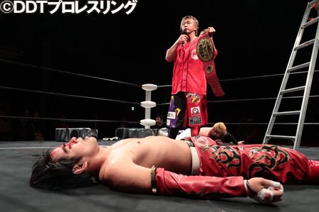 Kodaka aún celebraba su triunfo cuando fue agredido por Naoki Tanizaki, quien le arrebató el cinturón y dijo que el 3 de mayo, en función que se realizará en el Korakuen Hall, contenderá por este cetro. Además señaló que si conquista el Campeonato Dove, también lo expondrá ese día para que el vencedor sea doble monarca.