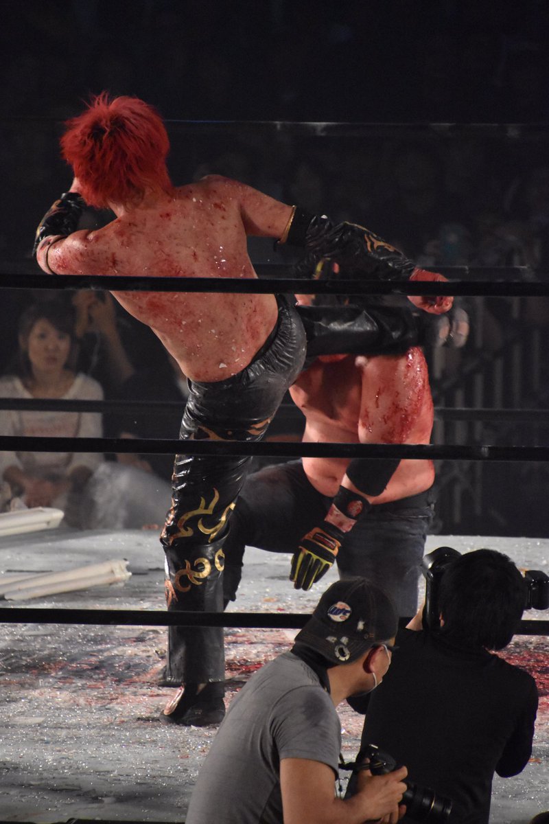 Doscientas lámparas de tubo rodeando el ring, fue el escenario donde dio comienzo la sangrienta batalla, que se prolongó por casi 18 minutos de sangrientos castigos, hasta que «Deathmatch Samurai» logró conectar su Isamuashi Zan para llevarse la victoria.