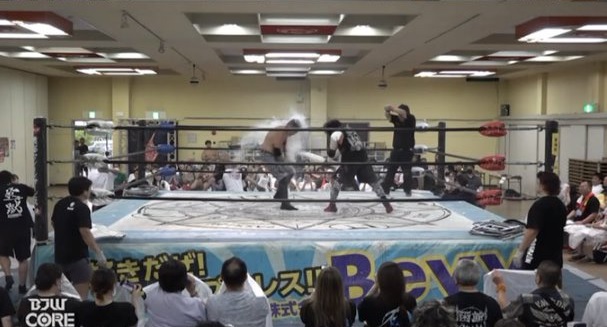 3. Daisuke Sekimoto y So Daimonji vencieron a Yuya Aoki y Shreddy (11:05) con un Black Rain de Daimonji sobre Shreddy.