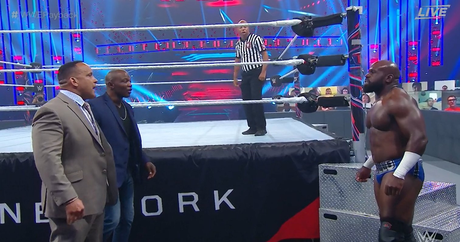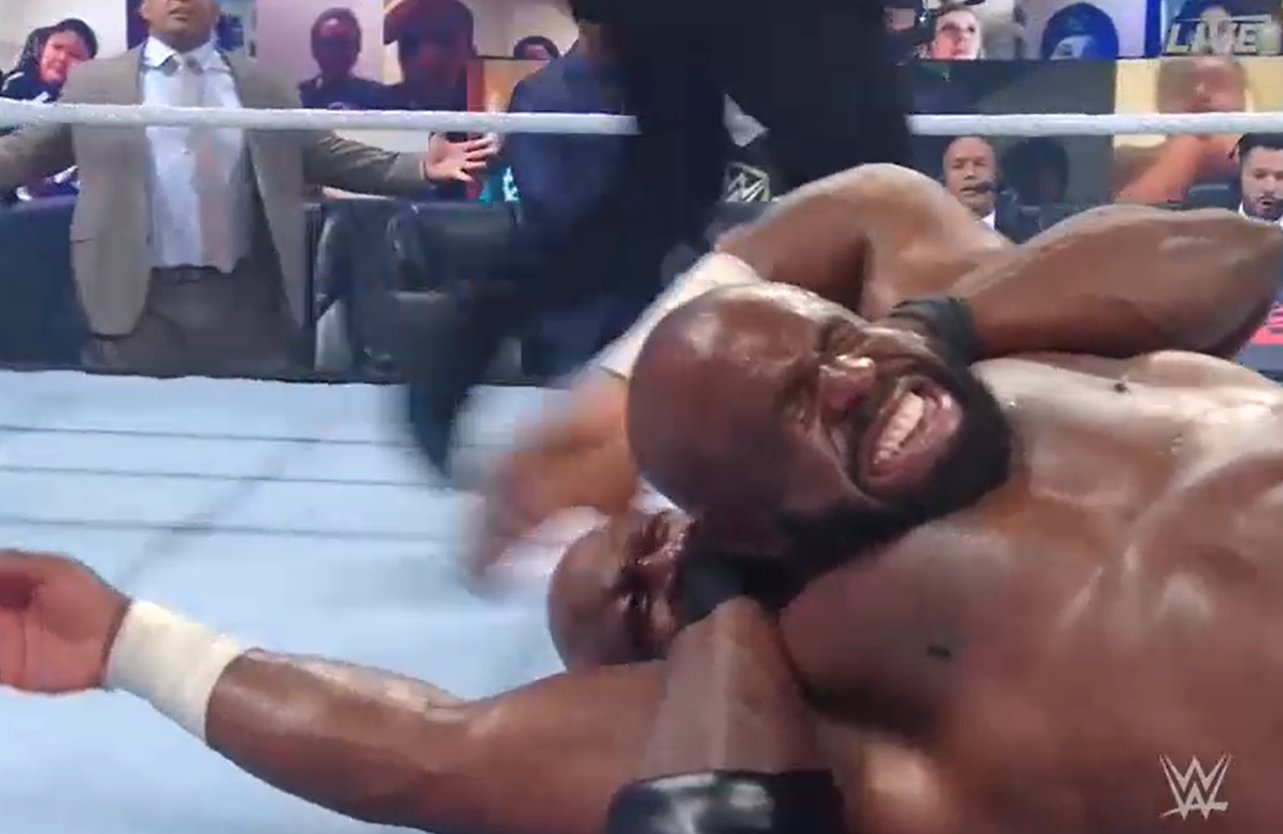 Crews eleva sus brazos, y el público lo sigue, hace un Suplex… Y luego otro Suplex alemán para Bobby Lashley. Busca rematar, pero decide buscar una Plancha Sapito para… ¡que Lashley evite la cuenta de 3 en la última palmada! Aquí Crews estuvo bastante cerca. Lashley está borrado de la lucha, pero Crews se distrae porque el árbitro le dice que se calme, y recibe un codazo en la cabeza y luego un tremendo Chokeslam. Lashley buscando su movimiento final… ¡Full Nelson para Apollo Crews que se convierte en una especie de Mataleón en la lona para la victoria! Tras la lucha, Crews intentó atacar a Lashley, pero MVP y Benjamin detuvieron el ataque. Crews se marchó amenazando con que recuperará su cetro.