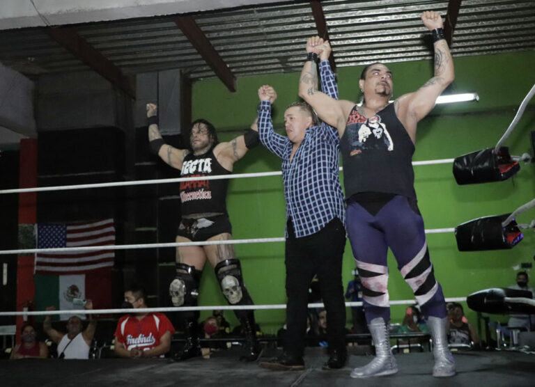 Acto seguido apareció de nueva cuenta el Bucanero y se armaron los golpes sobre el ensogado, saliendo está vez perjudicado el Panameño. Y así con la sangre calientita El Corsario del Amor reto lo mismo a Veneno, qué a Mr. Águila a un triangular de cabelleras.