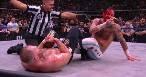 Punk tuvo destellos de reacción, pero Moxley contestaba con fuertes golpes y ataques cada que esto parecía suceder, poniendo en predicamento al excampeón.