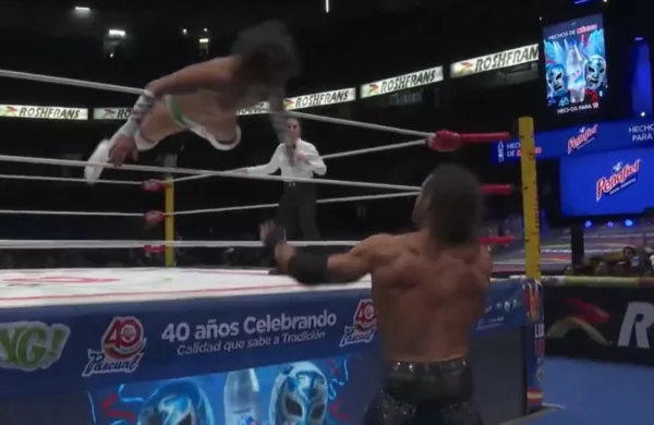 En esta ocasión, ambos protagonizaron un combate lleno de acrobacias, ataques aéreos y buenos movimientos. El integrante del Consejo Mundial de Lucha Libre resistió los castigos del importado, quien lucía como favorito pues su clásica melena es una característica importante de su personaje desde hace muchos años, por lo que no parecía que pudiera perder.