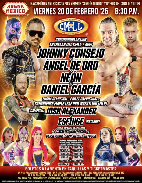 La actividad continuará este 20 de febrero en el Viernes Espectacular de Arena México. El Campeón Canadiense de MLP, Josh Alexander, estrella también reconocida por su paso en AEW, pondrá en juego su título ante el mexicano Esfinge.