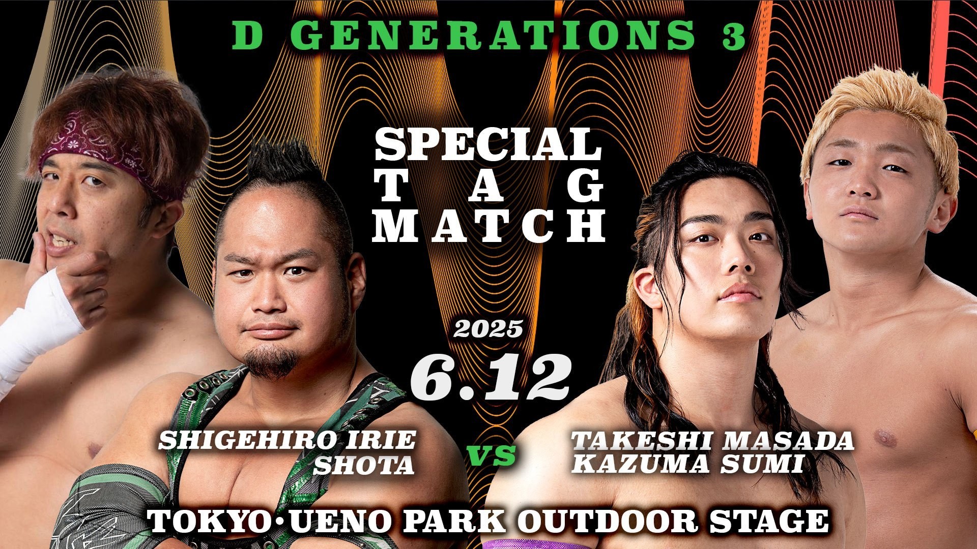 Los luchadores de D GENERATIONS están progresando en sus propias funciones. El evento principal tuvo a Takeshi Masada y Kazuma Sumi doblegando a Shigehiro Irie y Shota del equipo Young Communication . Casi resultó al revés cuando Shota atrapó a Masada con el Gannosuke Clutch, pero Sumi estaba allí para romper el toque de espaldas. Sumi luego eliminó a Irie con un Topé Suicida, lo que le dio a Masada el espacio para aplicarle a Shota su finalizador para la victoria. Masada compartió buenas noticias con los fanáticos después del combate, ya que anunció que habrá un programa de D GENERATIONS cada mes a partir de ahora