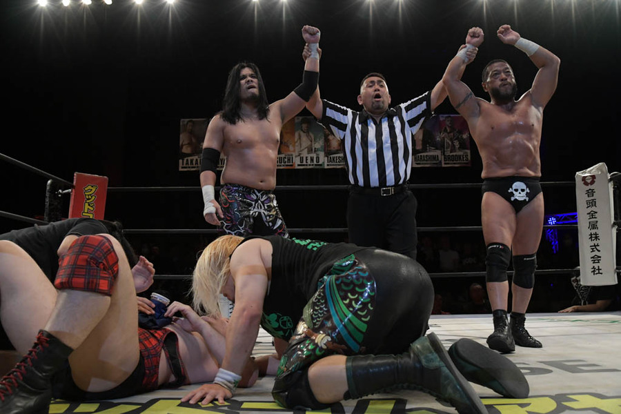 En duelo de tercias, Magnitude Kishiwada, HUB y Kengo Takai superaron a Tsubasa, Billy Ken Kid y Shoichi Uchida.