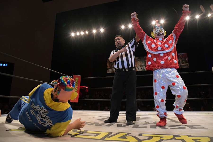 9. Special Singles Match – Kuishinbo Kamen, Kikutaro & Yukinori Matsui 30th Anniversary – If you add it, the 90th Anniversary(!) Commemoration Match ~Laughing Fukuraimon~: Kuishinbo Kamen derrotó a Kikutaro (16:38) con un Kankuu Tornado.