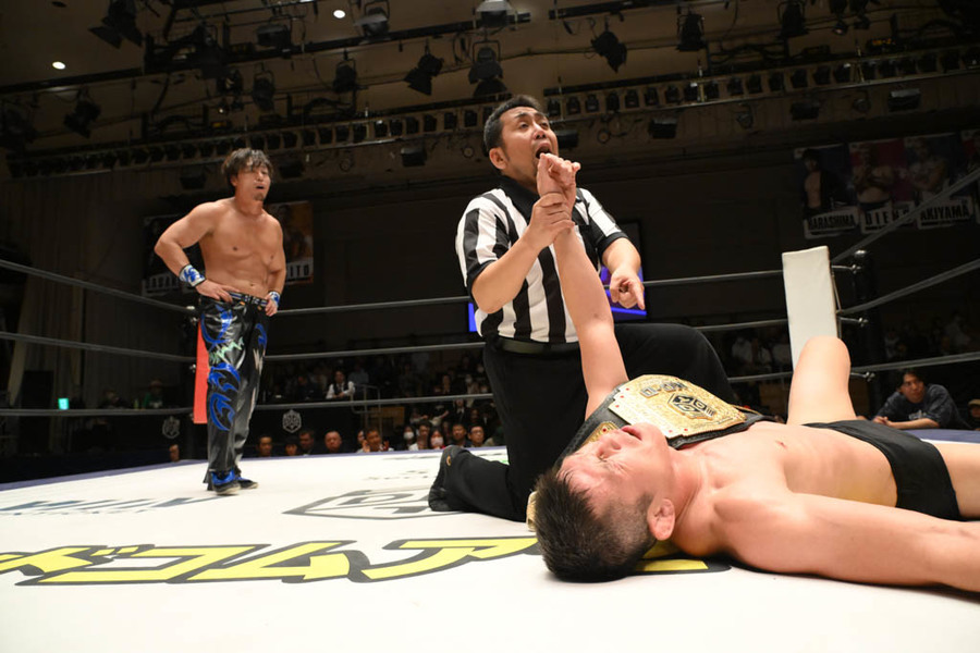 8. KO-D Openweight Title: Shinya Aoki (c) venció a Shunma Katsumata (7:56) con un Full Nelson Hold defendiendo el título
