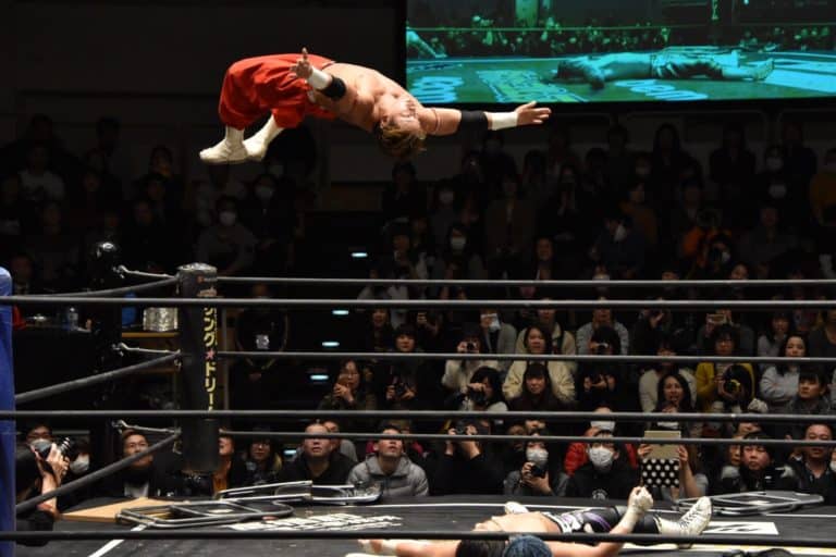 – Yuko Miyamoto derrotó a Daisuke Sasaki con un Moonsault Press (29:43)