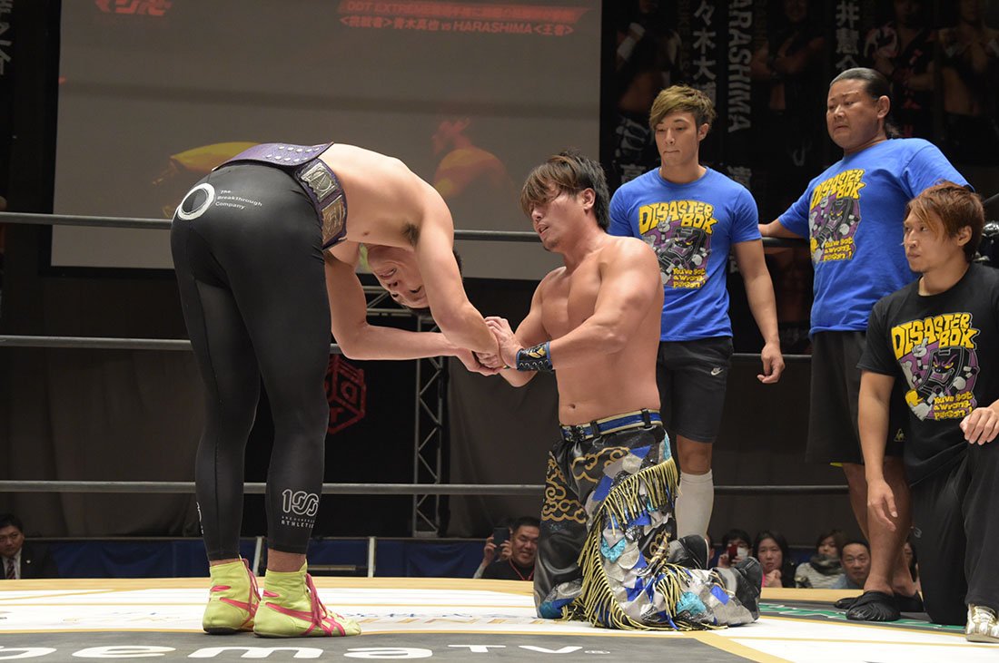 7. DDT Extreme Title, Wrestling Rules: Shinya Aoki venció a HARASHIMA (c) (8:26) por TKO (Triangle Choke) – conquistando el título .