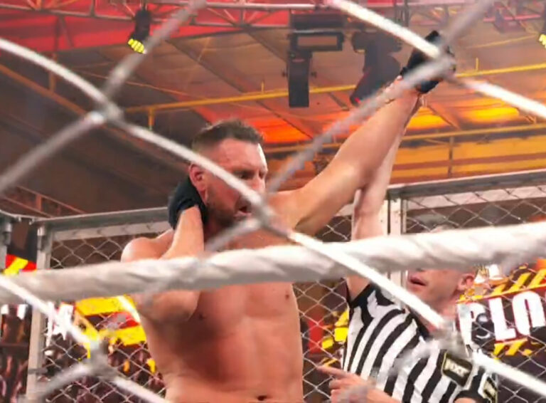 Ambos luchadores prepararon una tabla y luego una mesa, pero no pudieron utilizarlas. Aunque Dijak logró cerrar la camisa y se dispuso a lanzar desde las alturas a su rival, pero con un cabezazo derribó a su rival sobre la mesa.