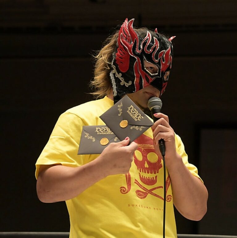 Pero Desperado no había llegado para hablar sobre el torneo «Best of the Super Jr. 31″ donde actualmente participa, o de su siguiente aparición en DDT en la magna función «Wrestle Peter Pan 2024«. De momento, sacó dos invitaciones para su evento «DESPE-Invitational» que se realizará el 10 de junio y se las entregó a Danshoku Dino, no si antes especificar que una invitación era para él y la otra para un luchador de su elección.