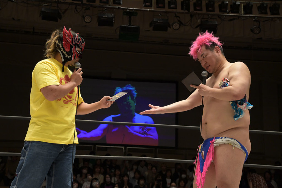 La súper estrella de New Japan Pro Wrestling, El Desperado, llegó al Tokyo Korakuen Hall para hacer una invitación personal al luchador de DDT, Danshoku Dino, a su evento «DESPE-Invitational».