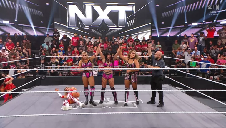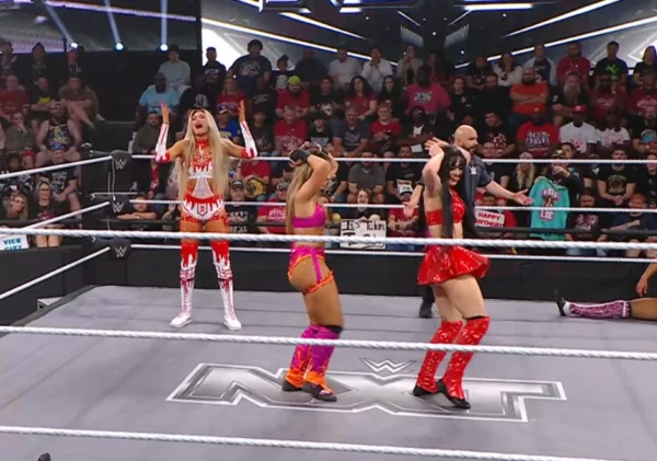 En NXT, Jacy Jayne, Fallon Henley y Lainey Reid (Fatal Influence) lograron imponerse ante Tatum Paxley, Izzi Dame y Lola Vice en una intensa contienda de tríos.