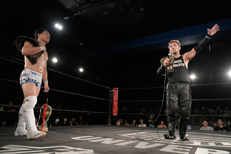 A continuación, Hikaru Sato y Hideki Suzuki lograron el Campeonato Nacional Unificado luego de superar a Suwama y Dan Tamura.