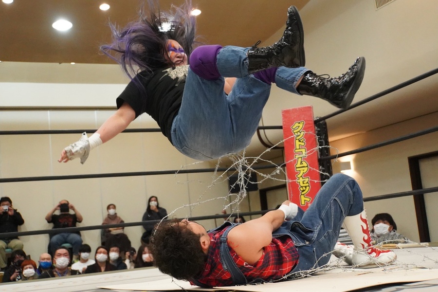 5. Independent World Jr. Heavyweight Title, Street Fight Style Special Hardcore Match: Shota (c) venció a Miss Mongol (15:29) con un Gannosuke Clutch defendiendo el título.