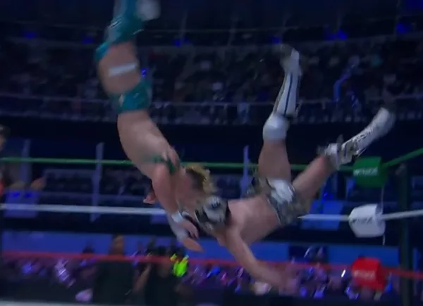 El combate inició con intercambio de vuelos y secuencias rápidas donde ninguno logró tomar control definitivo. Carter fue el primero en imponer ritmo con superkicks para mandar a sus rivales fuera y lanzarse en un vuelo hacia ringside, aunque Cartwheel y Elio reaccionaron para frenar cualquier intento de dominio prolongado.