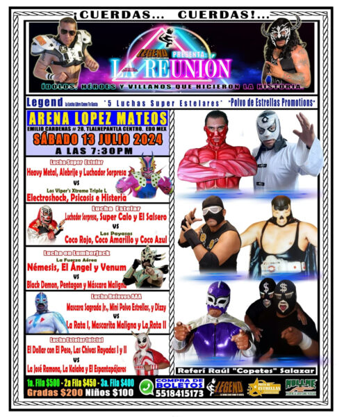 Así, el próximo 13 de julio en la Arena López Mateos, se presentará un cartel con elementos que revivirán viejas glorias de la lucha mexicana.