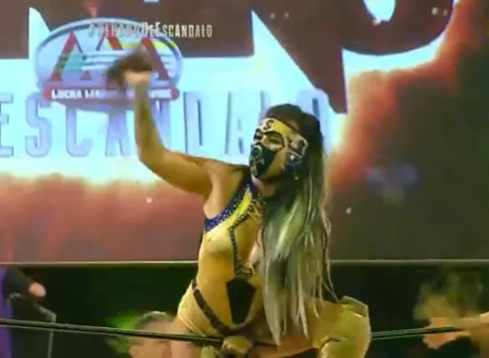 Aunque cuando mejor lucía la ex Reina de Reinas, el Hijo del Tirantes le acomodó un sillazo que la dejó en malas condiciones.