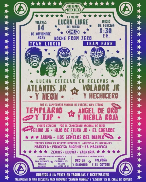Los boletos para la “Noche From Zero” ya están disponibles en la taquilla del CMLL y plataformas autorizadas, y se espera un lleno total para esta fusión histórica entre la música y la lucha libre.