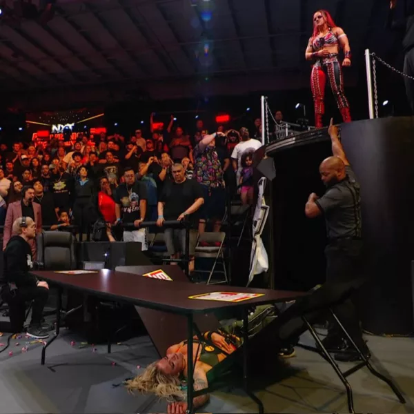 La intensa rivalidad entre las antiguas compañeras Zaria y Sol Ruca culminó de manera espectacular, consolidando a Zaria como la principal villana de NXT. En un final verdaderamente caótico desde lo alto de un balcón, Zaria fingió una emotiva reconciliación pronunciando el clásico «Lo siento, te amo», solo para traicionar a Ruca segundos después y arrojarla contra unas mesas (con un mal aterrizaje incluido). Este cierre no solo fue sumamente entretenido, sino que sirvió como la despedida perfecta e impactante para Ruca, quien presumiblemente se unirá a RAW.